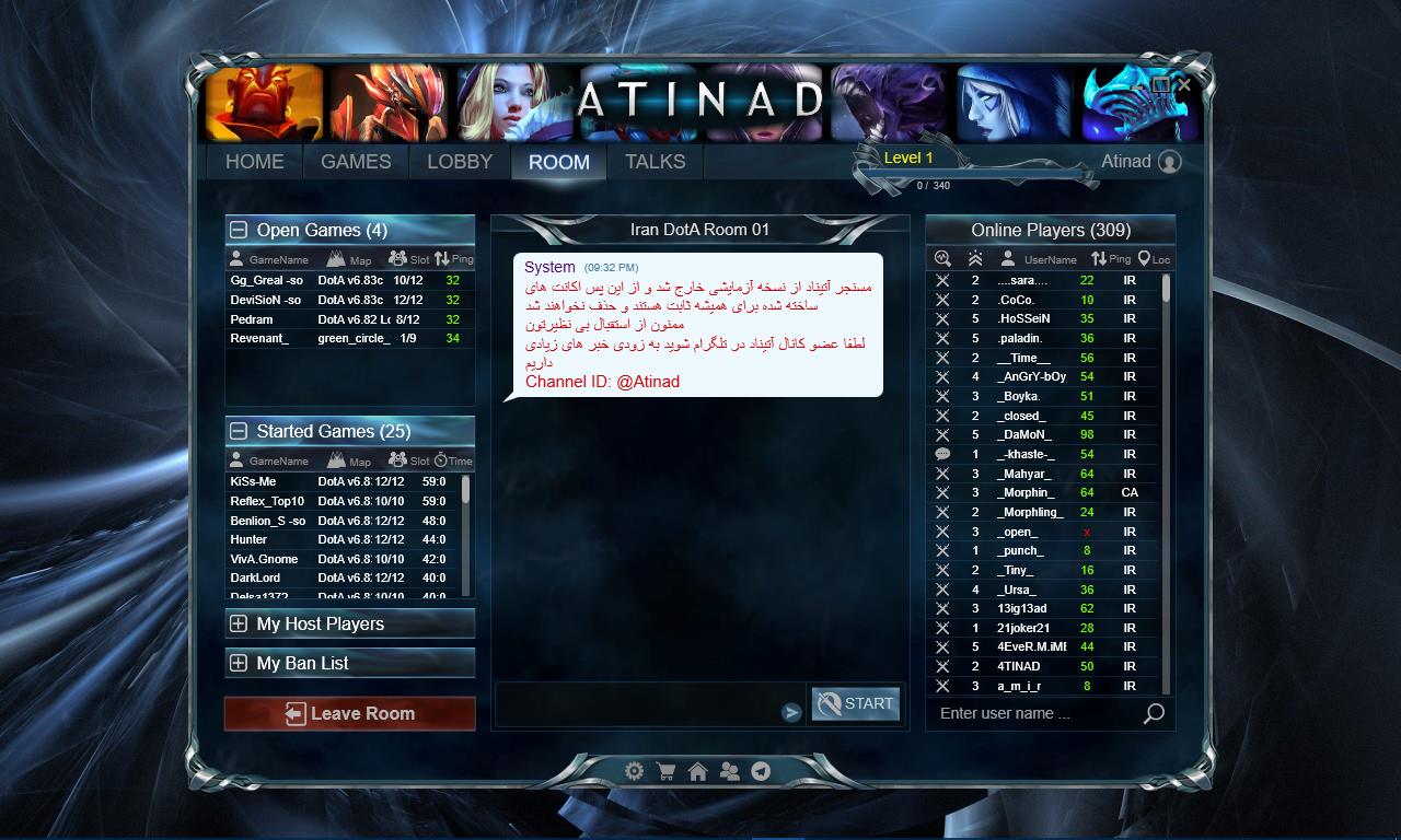 Atinad is the name for a variety of online games for playing various games, which is currently supported by the Warcraft game and will soon be added to various games. Also, Atinad also has the opportunity to chat privately with his friends.
